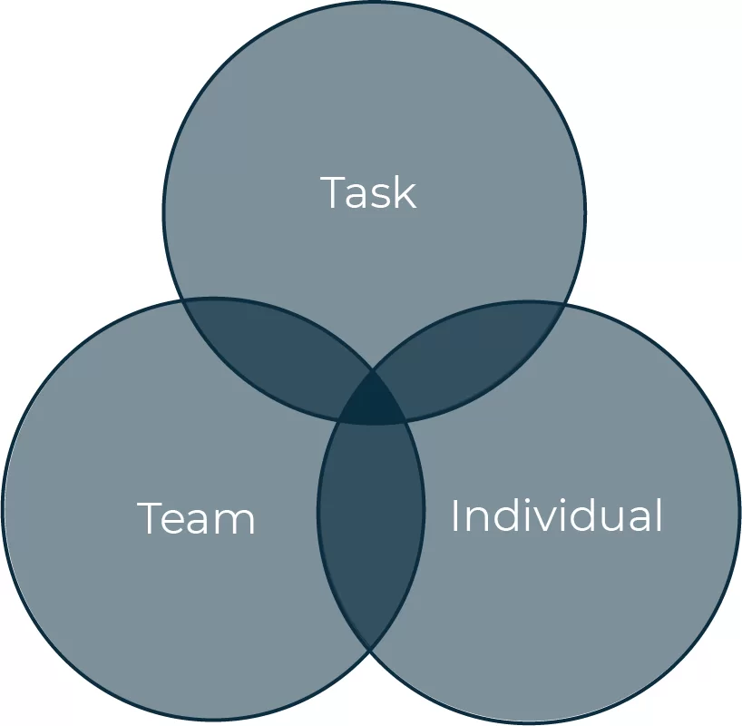 3 Circles Model: John Adair created the “3 Circles Model” to represent three core management responsibilities: 1. Achieving tasks 2. Managing the team or group 3. Managing individuals. Where we use this most: People Strategy