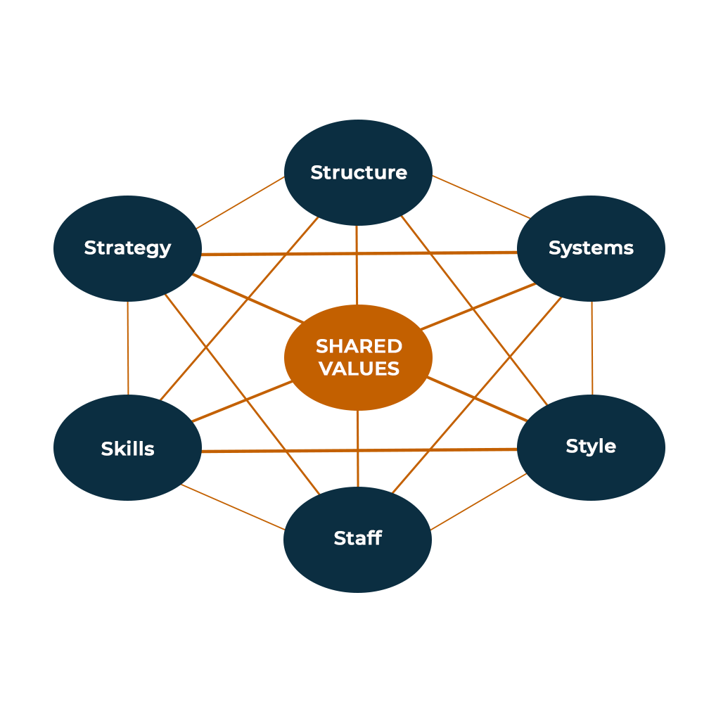 McKinsey 7s Model: the 7s Framework is a tool to analyse a business’ organisational design against 7 categories: Structure, Strategy, Systems, Skills, Style, Staff and Shared Values. Where we use this most: Scaling Up