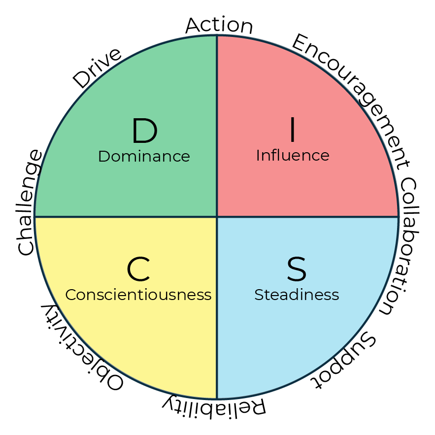 DiSC Behavioural Analysis: a DiSC Assessment identifies personality traits and behaviours of a person and scores them in 4 different categories (Dominance, Influence, Steadiness & Conscientiousness) allowing teams to understand one another in more depth and communicate more effectively. Where we use this most: Creating the Vision