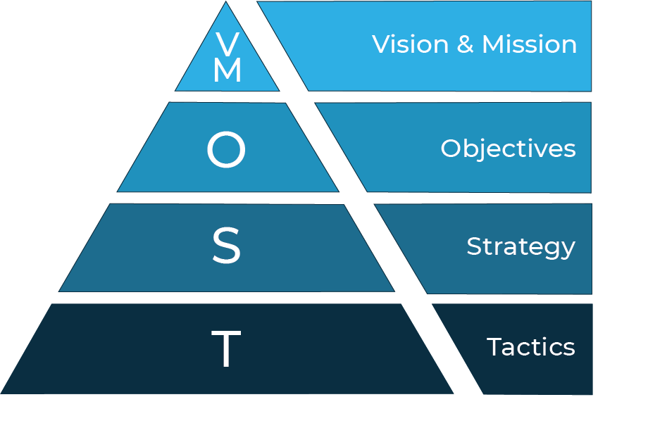 VMOST Analysis: the VMOST Analysis is an evaluation of a business’s core strategies to ensure that the supporting activities of a strategy are being carried out. The focus of a VMOST Analysis is on 5 core elements: vision, mission, objectives, strategies and tactics. Where we use this most: Operational Effectiveness
